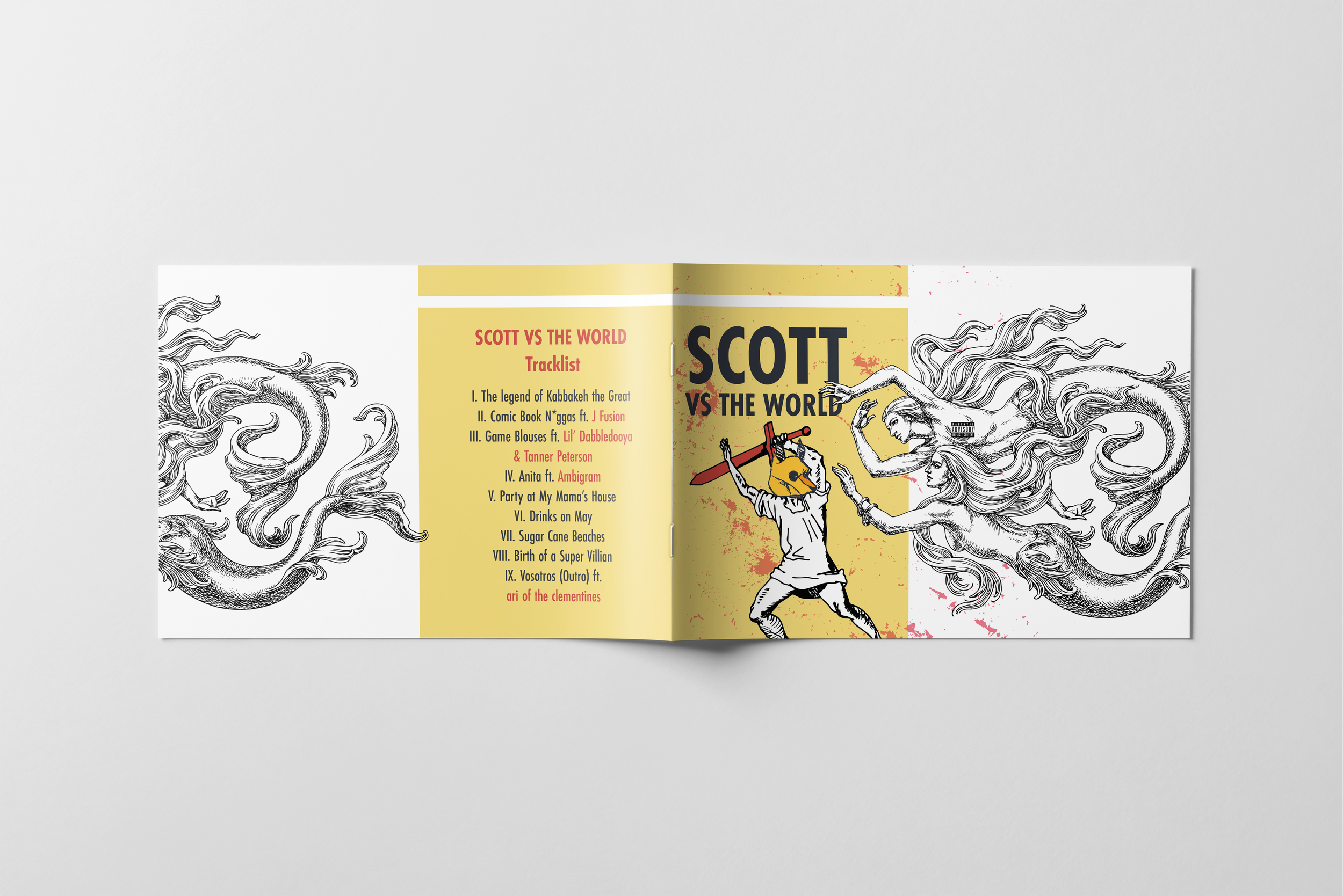It’s not all work and no play! Upon the release of Scottie Momodu’s 3rd studio album, I was tasked to illustrate the album cover and other promo material. I hand drew the character of Scott in battle with two mythical merfolk. I also created the album insert using a combination of Indesign and Illustrator. I also created the cover for a comic book that’s in the works based on the album.